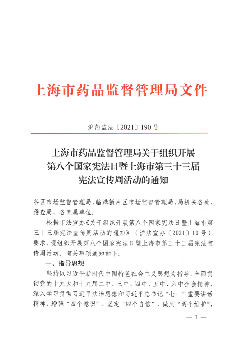上海市药品监督管理局关于组织开展第八个国家宪法日暨上海市第三十三届宪法宣传周活动的通知