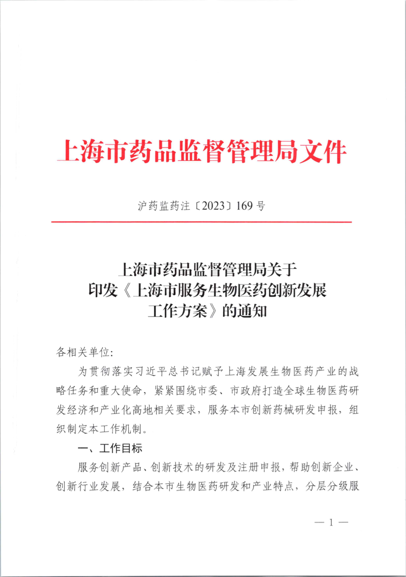 上海市药品监督管理局关于印发《上海市服务生物医药创新发展工作方案》的通知